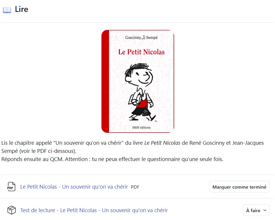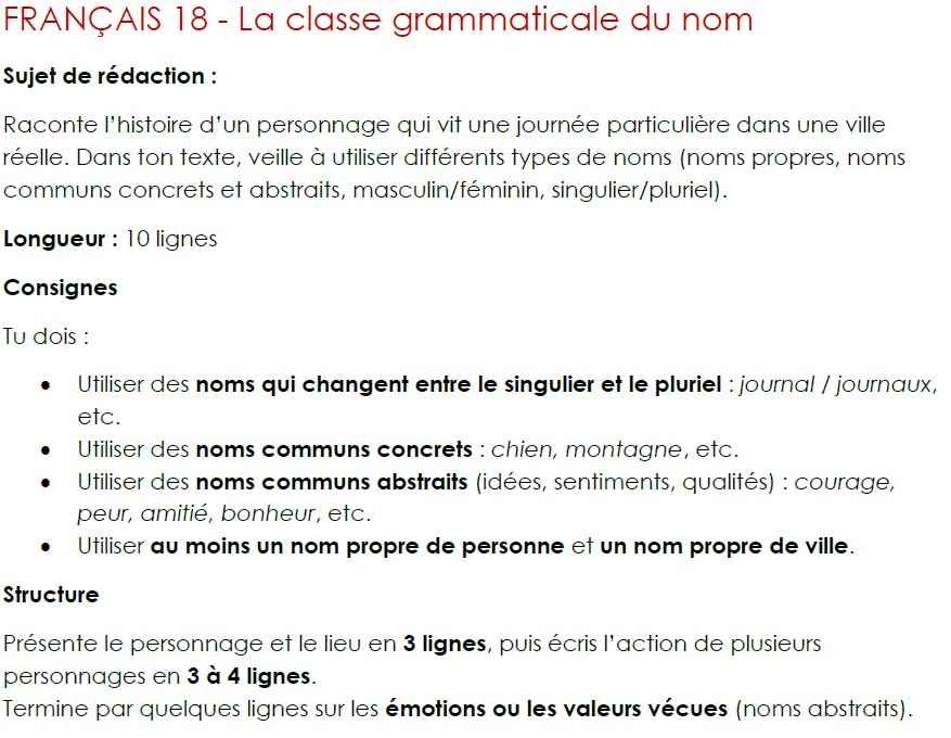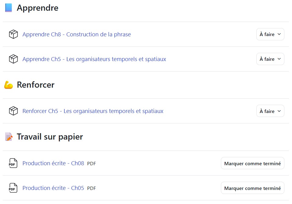 Exemple : semaine 1 du cours de français